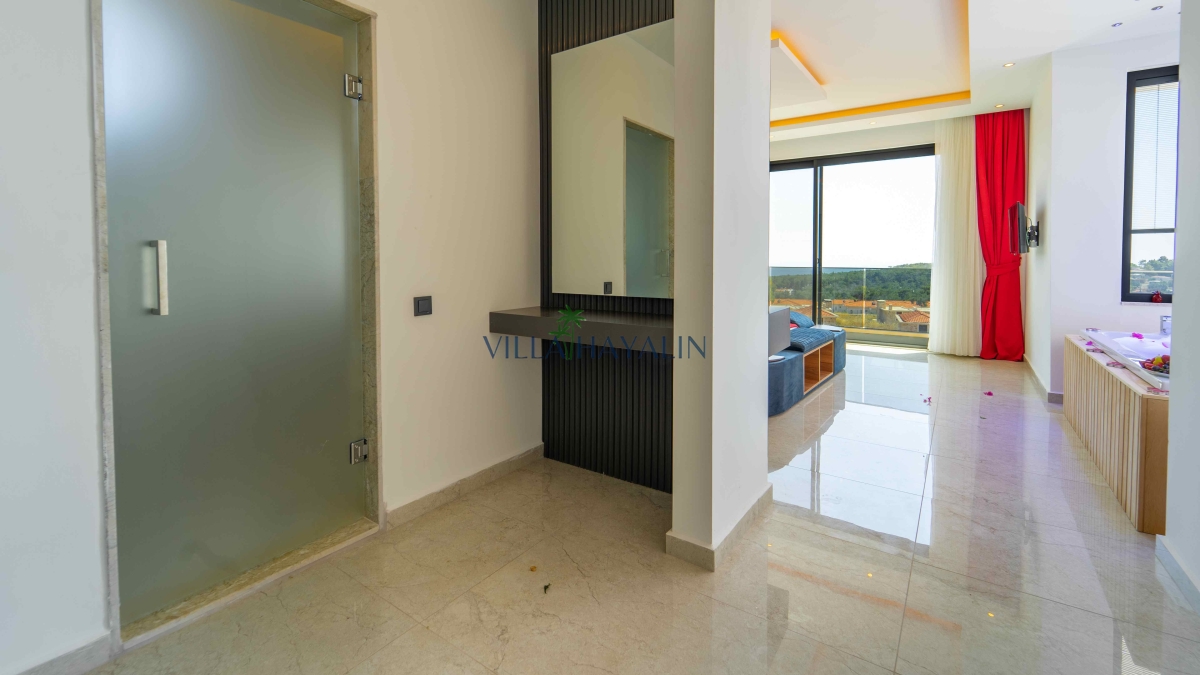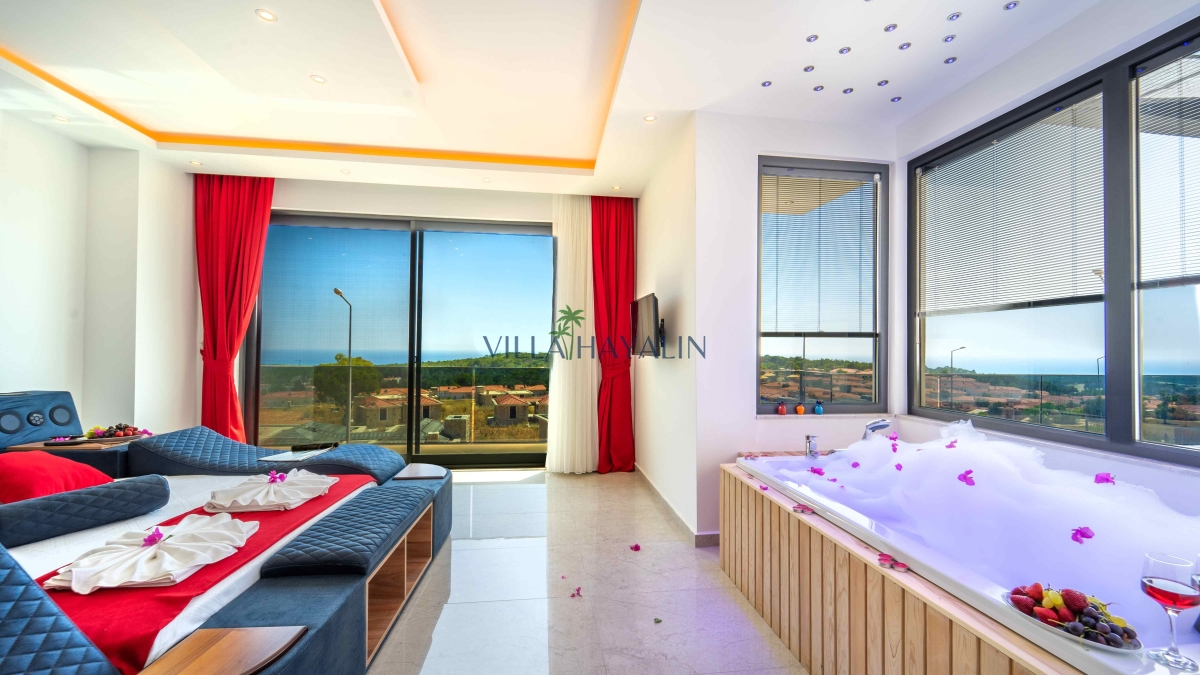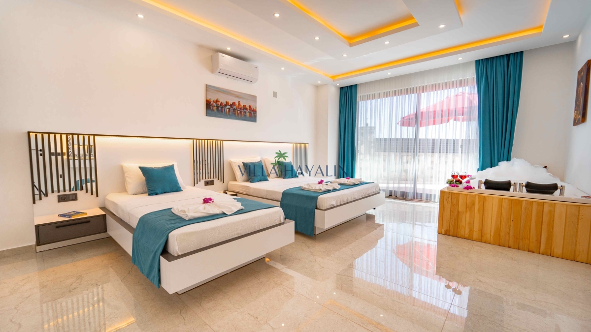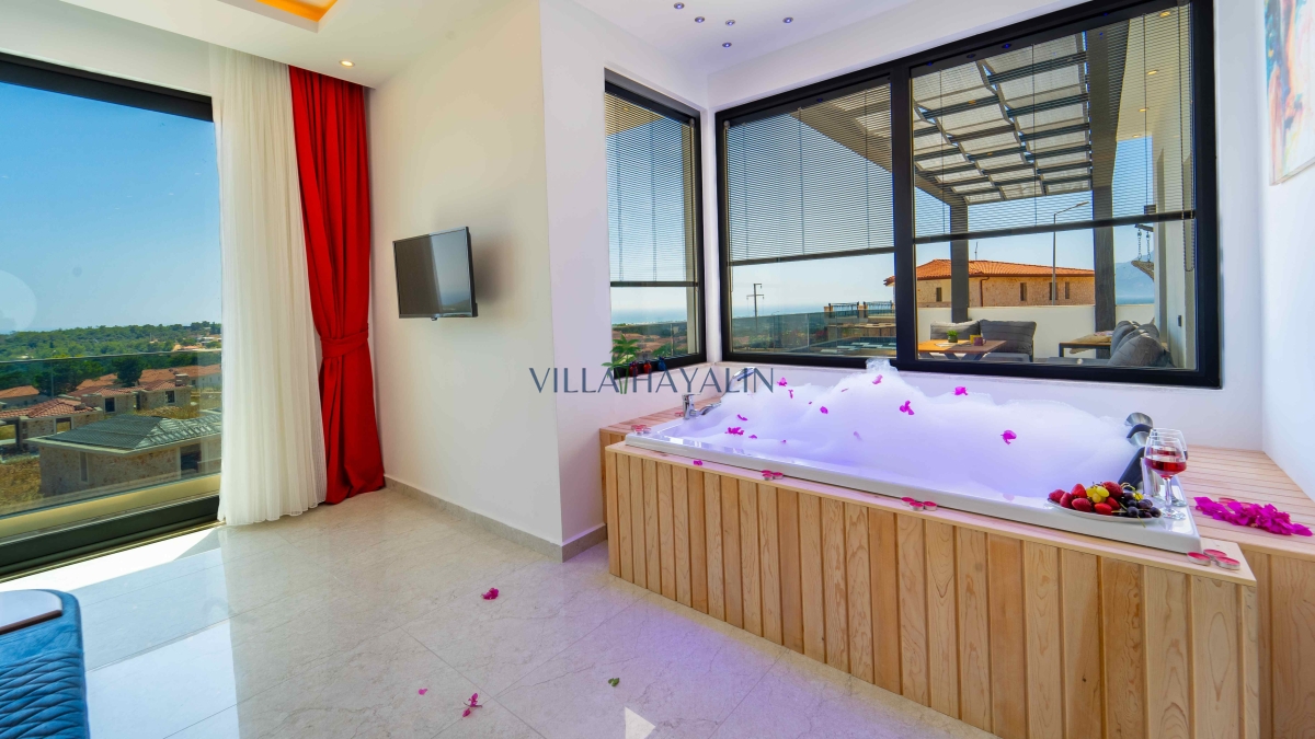 Her iki yatak odasında bulunan jakuzi ile rahatlamak, villanın sunduğu ayrıcalıklardan sadece biridir. Ayrıca, villada yer alan jakuzi ve sauna ile tüm yılın stresini ve yorgunluğunu atabilirsiniz. Özenle seçilmiş lüks dekor ve modern tasarım, konaklamanızı unutulmaz kılacak; tatiliniz boyunca kendinizi ayrıcalıklı hissedeceksiniz.
