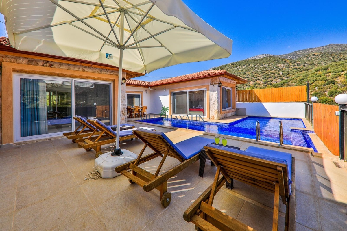 Villa Arıkan, Turizmin merkezi Antalya’nın Kaş ilçesinde bulunmaktadır. 2019 yılında tamamlanan muhteşem doğa manzarasıyla öne çıkan villa Büyük Çakıl Plajı’na sadece 400 metre yürüme mesafesindedir. Villa tatilinde deniz keyfinden de vazgeçemeyen misafirlerimiz için Villa Arıkan ideal bir seçenektir. Villamız tek katlı ve taş ev konseptinde olup iki oda/dört kişi kapasitelidir. Çekirdek aileler, balayı çiftleri ve muhafazakar ailelerin rahatlıkla kiralayabileceği villamızda korunaklı yüzme havuzu bulunmaktadır. Havuz önünde korunaklılık için açılır kapanır perde sistemi mevcuttur. Havuz kullanılmadığı zamanlarda perde açılarak daha ferah bir görüş açısı oluşmaktadır. Misafirlerinin her türlü konforu düşünülerek hayata geçirilen villamızda rüya gibi bir tatil keyfi yaşayabilirsiniz. Villa Arıkan Kaş merkeze sadece 1.5 km mesafededir.